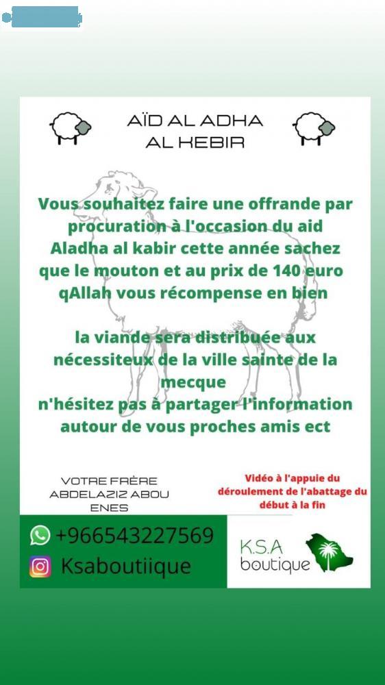 Assalamaleykoum moin de 2 sem avant aid aladha offre votre sacrifice