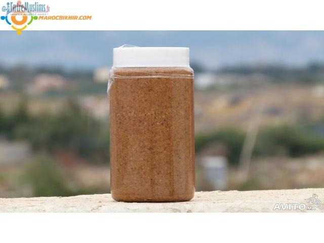 Nous vous proposons en vente en gros notre Amlou naturelle, pâte a tartiner berbère (miel d'oranger, huile d'argan, amande).