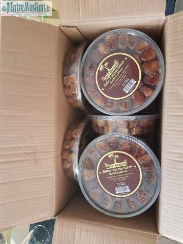 Salam alaykom a l'approche du mois de ramadan ARRIVAGE DE DATTES SUKARI TOUTE FRAICHE NOUVELLE RECOLTE IDEAL POUR REVENDEUR en boite de 650g vente uniquement par palette qui contient 2000boites au prix de 3,7€ la boite pour toute commande n'hésitez pas a me contacter au 0615899145 transférez barrakallahofikom