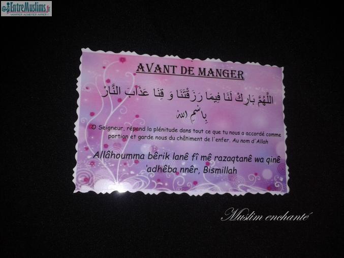 Magnifiques cartes d'invocation à coller dans différentes pièces de la maison. en arabe, français et phonétique.