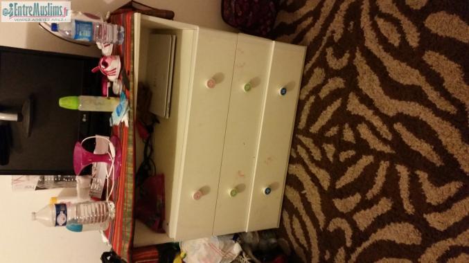 Salam aleykoum wa rahma toullah wa barakat. Je vends ma commode +mon tapis dimension 140/200 à 90e. La commode seule à 50e et le tapis seul à 40e. Prix négociable.