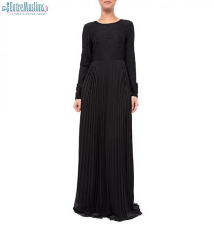 Robe maxi avec manches longues de couleur noire pour occasion spéciale, sobre classe et très élégante. Peut-être accessoirisé avec une ceinture, collier etc... Achetée sur le site "Inayahcollection.com" (articles de très bonne qualité)