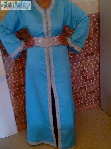 Je vend mon caftan bleu turquoise/argenté 2 pièces ( robe + pantalon court), porté 1 fois, ce caftan a étais entièrement cousu a la main. Taille allant du 40 au 44, prix a débattre.