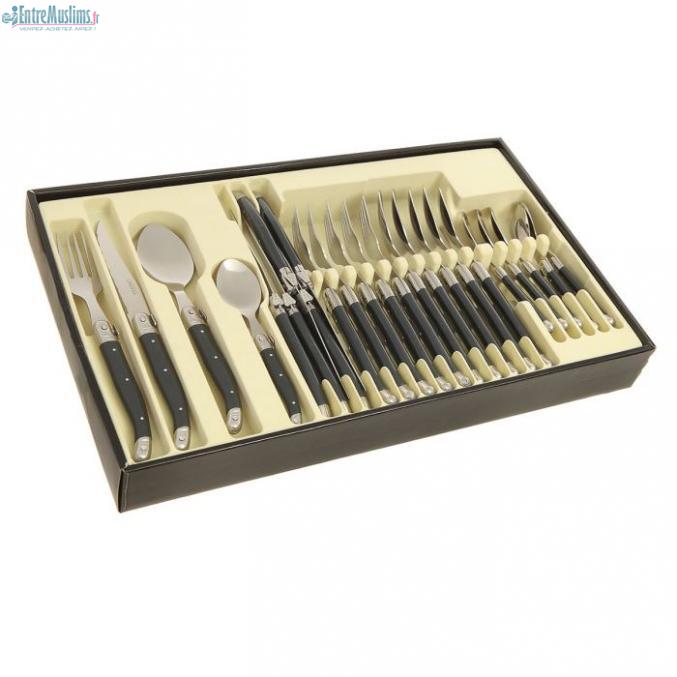 Coffret cadeau ménagère de 24 pièces Laguiole gris anthracite: couteaux de table, fourchettes, cuillères à soupe et à café.