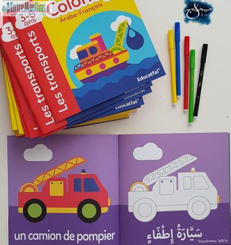 Un très beau cahier de coloriage arabe/français sur le thème des transports.
