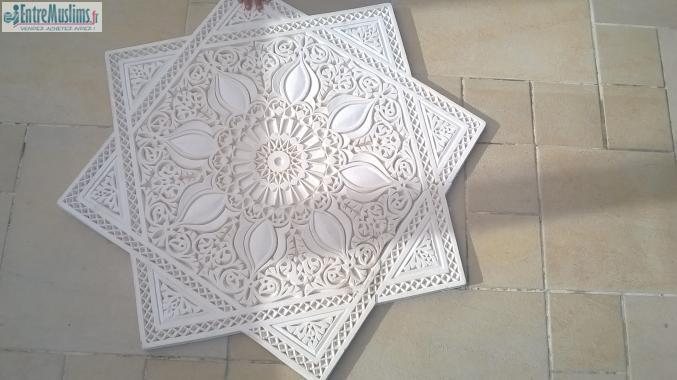Propose rosace en plâtre armé.90 cm de diamètre...Elle se colle très facilement...
