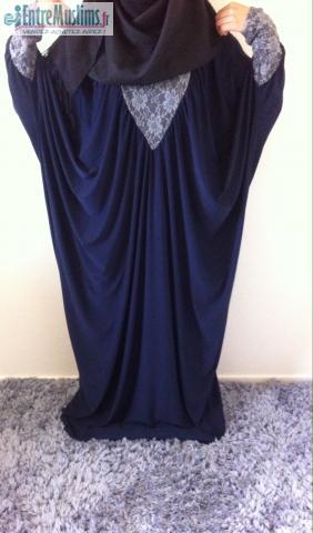 Abaya manche avec dentelle coloré