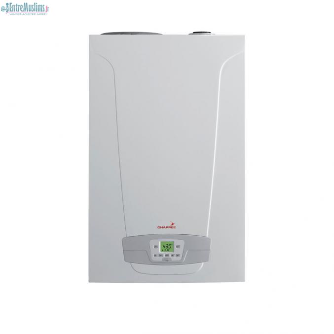 Chaudière à gaz murale de marque CHAPPEE et de modèle CORPS INITIA DUO 3.24 FF 24 kW cheminée avec ballon 60L ventouse