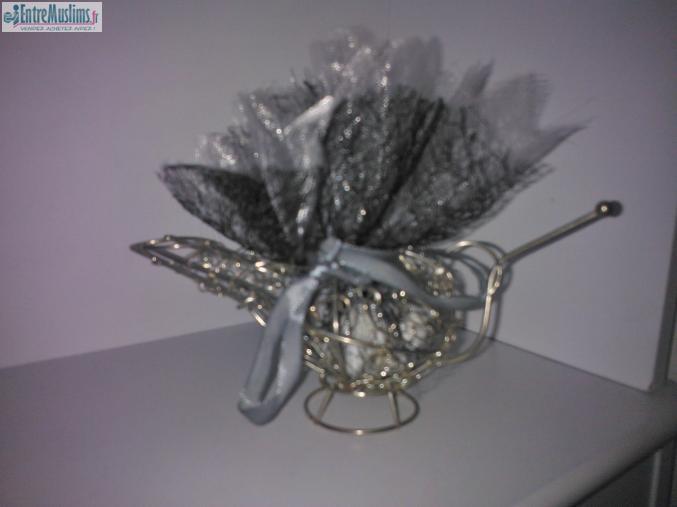 salam alikoum je revend des contenants pour dragees en forme lampe d'aladdin en métal couleur argent, tres beau rendu , j'en ai trop acheter pour mon mariage , il m'en reste 90 je les vends avec les dragees et les tulles , 1 euro piece