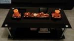 Une table de séjour en verre de couleur noir, pratique avec ses deux plateaux.
