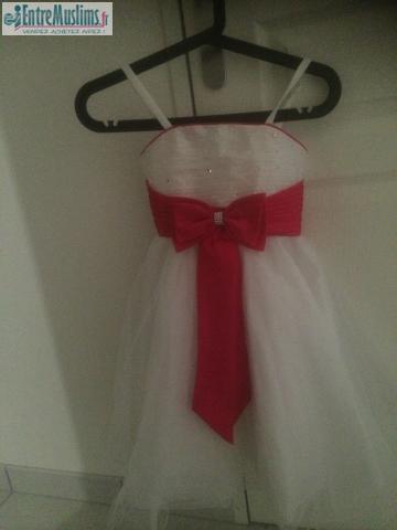 salam alikoum vend tres belle robe ceremonie 6ans blanche avec noeud rose fushia