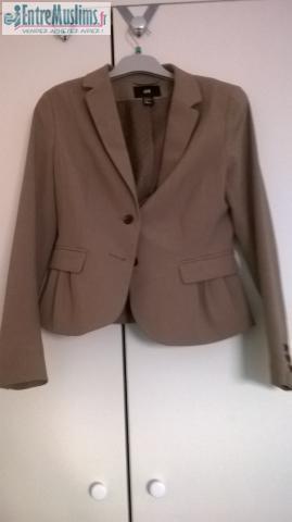 salam alikoum je vend une veste tailleur neuf taille 38 . couleur beige marron marque h et m