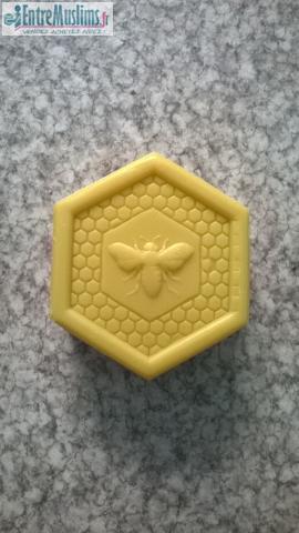 Nous vous proposons du savon artisanal, pur végétal, fabrication en France, cube de 100g au miel, propolis, gelée royale, huile d'olive