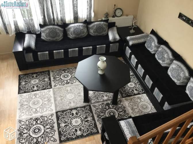 Envie d'avoir un salon élégant, Chic avec une touche orientale ? Nous vous proposons notre Salon qui est de couleur noir et argenté , acheter récemment (2015) , on le vend pour des raisons de déménagement (pour le prix c'est négociable)