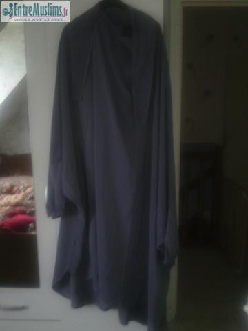 Je donne trois jilbebs : un jilbeb gris clair (deux pièces (haut + jupe) taille 1), un jilbeb gris foncé (deux pièces (haut + pantalon) taille XL) et un jilbeb noir (une pièce taille 4).