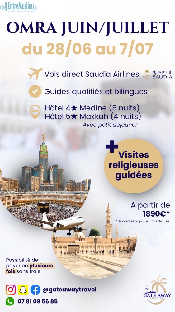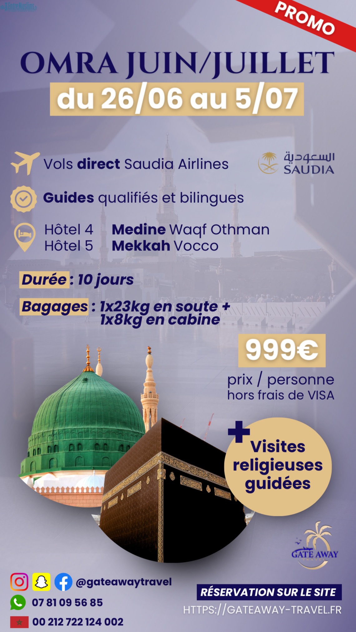 Que tu sois débutant(e) ou habitué(e), cette Omra est l’occasion de revivifier ta foi, de te reconnecter à l’essentiel, et de vivre des moments puissants en toute sérénité.