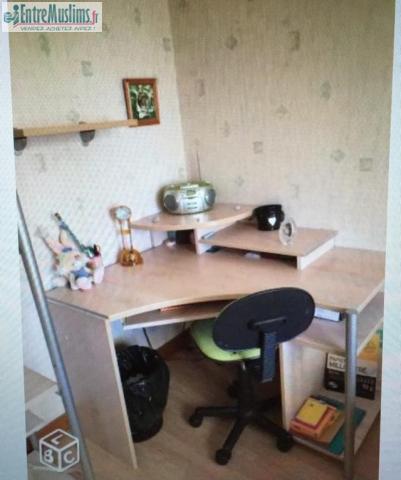 À vendre : Table de chevet , lit + sommier , grand bureau, étagère murale et grand meuble avec 7 étagères