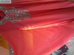 Couleur rose, entièrement doublée, Manches papillons (reliées à la robe avec des perles), broderies argentées. Taille S (36/38/40) (ne moule pas), je fais 1m65 et elle me cache les pieds.