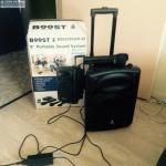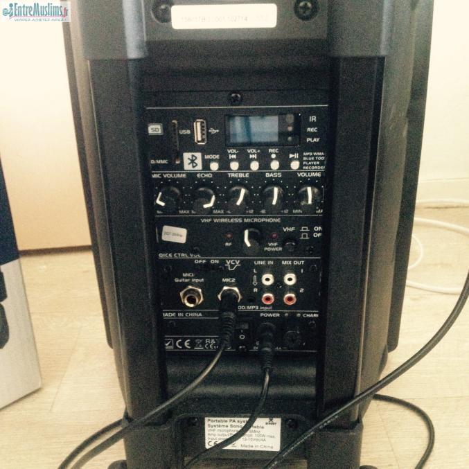 Cette enceinte portative vendu avec 2 micros dont 1 sans fil, temps de batterie hors prise 6h