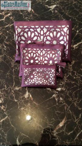 Je vends des lots de 3 pochettes (maquillage, porte monnaie…) à 15 euros le lot. Je dispose de plusieurs couleurs (rose, bleu, gris, noir, blanc, beige, violet, grenat). Possibilité de mixé les couleurs comme de prendre un lot monochrome.