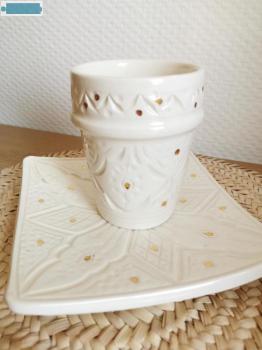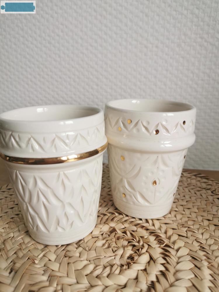 Je propose à la vente quelques articles en céramique (argile blanche) et touche d'or 10 carats.