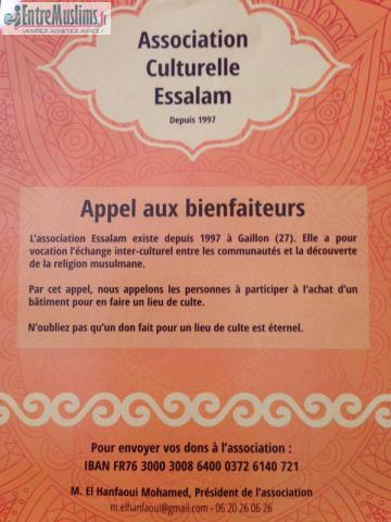 L'association Essalam à besoin de votre aide dans l'achat d'un entrepôt visant le projet d'agrandissement pour ses fidèles; Accueillir plus de personnes, une salle pour les femmes, 4 classes pouvant contenir 25 élèves,ect...InchaAllah