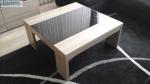.Table basse carrée 90x90 cm avec un verre noir au centre de la table qui apporte une touche moderne