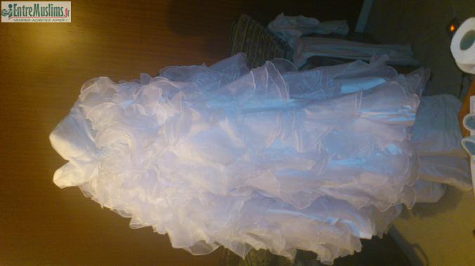 As salam alaycoum mes sœurs je met en vente cette magnifique robe de mariée porter une fois. Avec laçage au dos pour un ajustement parfait. Traîne de 70 à 80cm. Je la vend 170e avec jupon voile et diadème ainsi que petite pince pour faire tenir le voile.