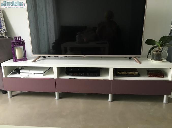 Banc TV avec tiroirs, blanc et violet, 180x40x48 cm