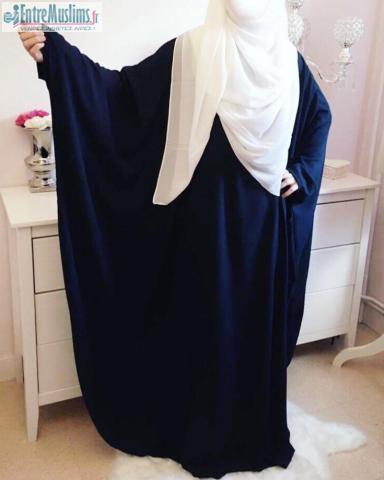 Abaya FARASHA légère et fluide disponible en plusieurs coloris : bleu nuit, kaki, bordeaux, rose/crème et azur clair.