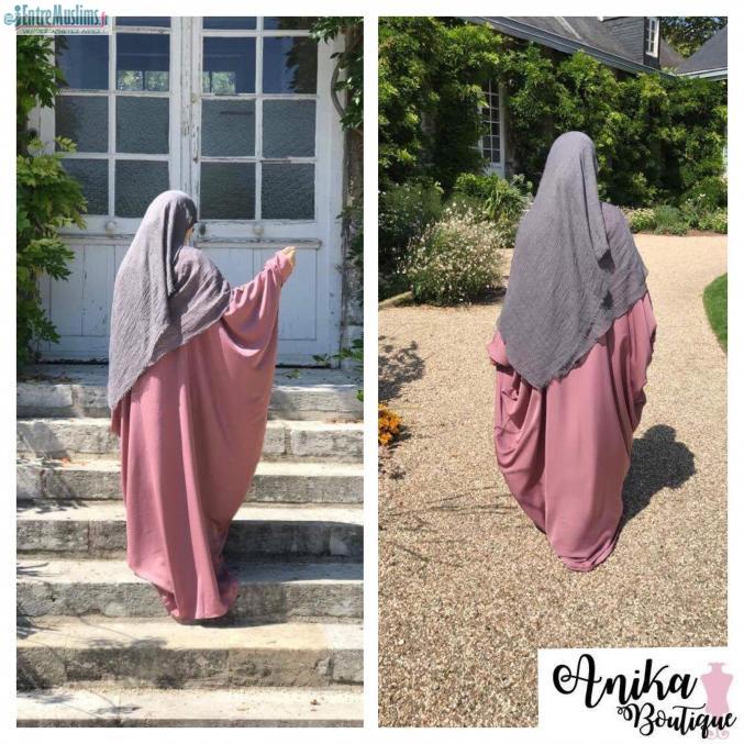 Abaya farasha Tissu nida d'excellente qualité . Plusieurs couleurs et tailles Disponible . Hijab froissé disponible également chez Anika Boutique .