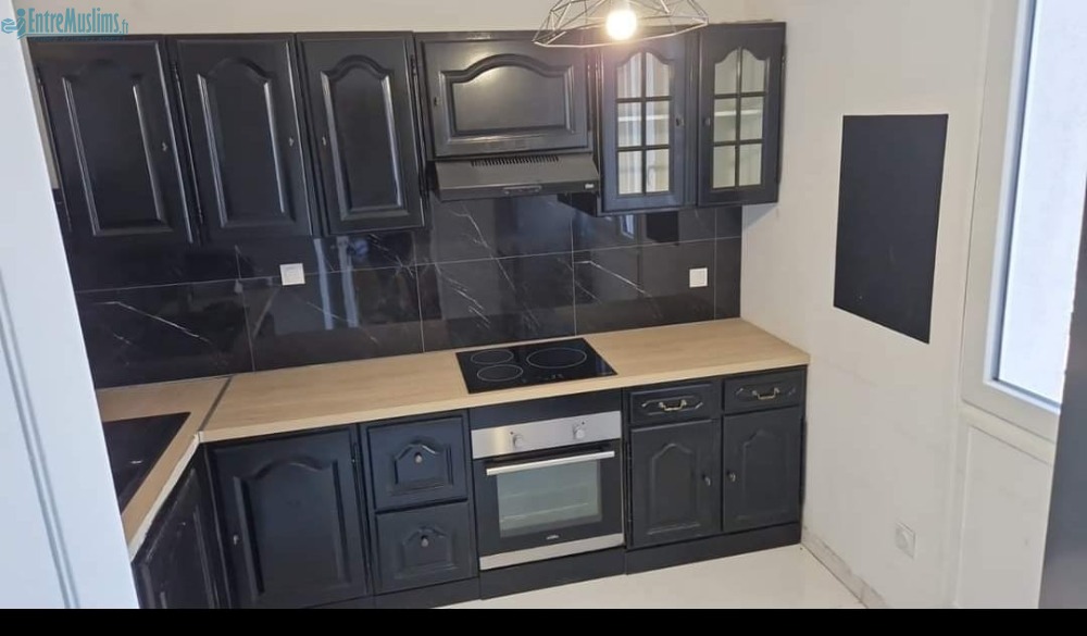 -Logement de 91 m2 comme neuf, meublé avec un espace salon, cuisine séparée, une salle de bain, un WC, 4 chambres et une grande terrasse extérieure avec salon de jardin.