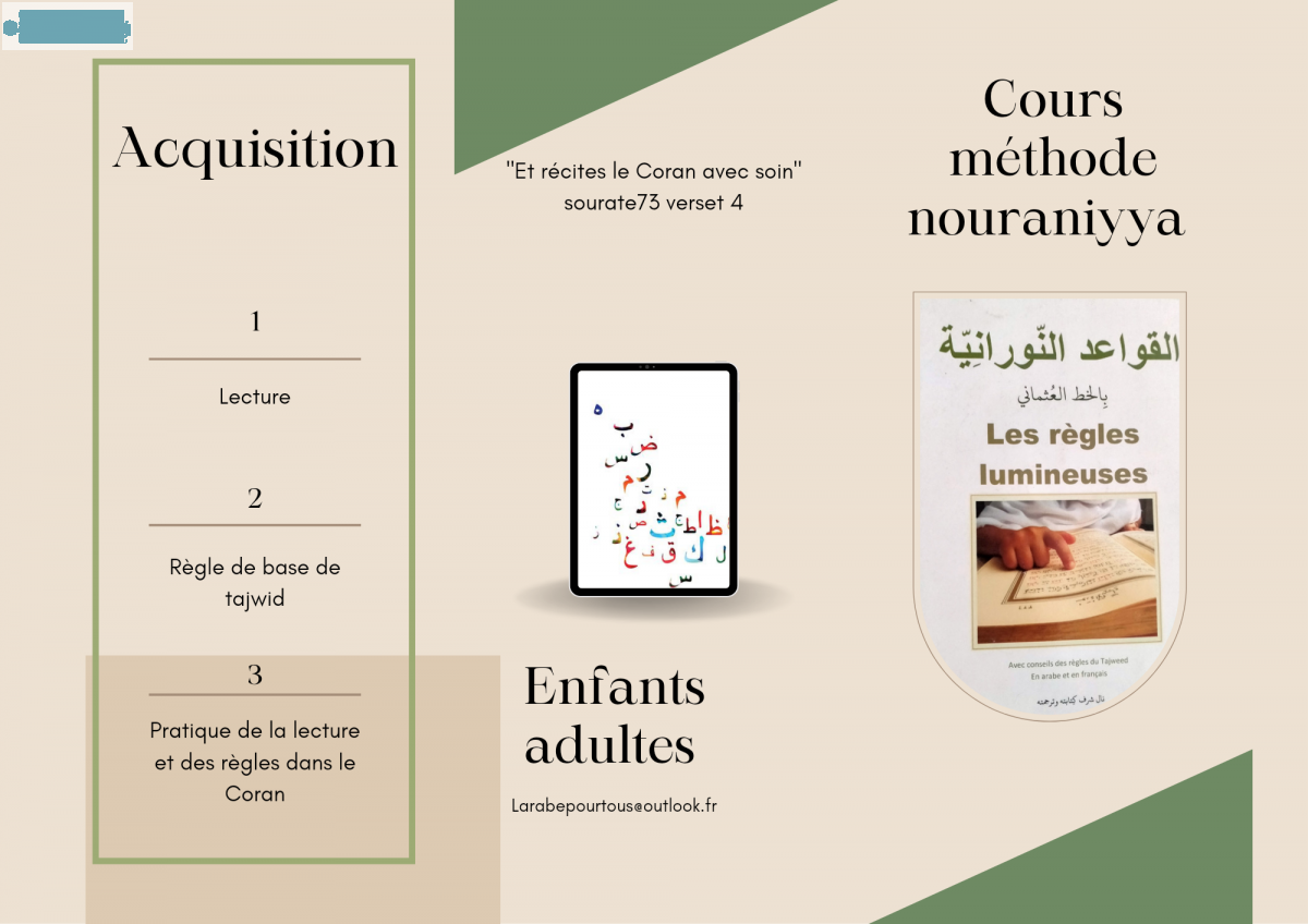 Ayant une expérience de 10 ans dans l'enseignement du Coran , et ayant étudié le tajwid auprès des meilleures enseignants certifiés (ijaza)ce sera avec plaisir de vous partager mon savoir.Je vous donnerai les outils pour lire et pratiquer les règles de tajwid et vous accompagnerai afin de lire de la meilleure façon.