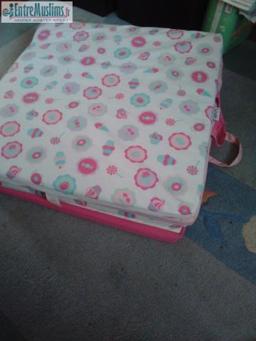 Vends un matelas 3 en 1 qui fais tapis de jeux, matelas, pouf. Housse en coton qui peut s'enlever pour la nettoyer. Poignée pour portée