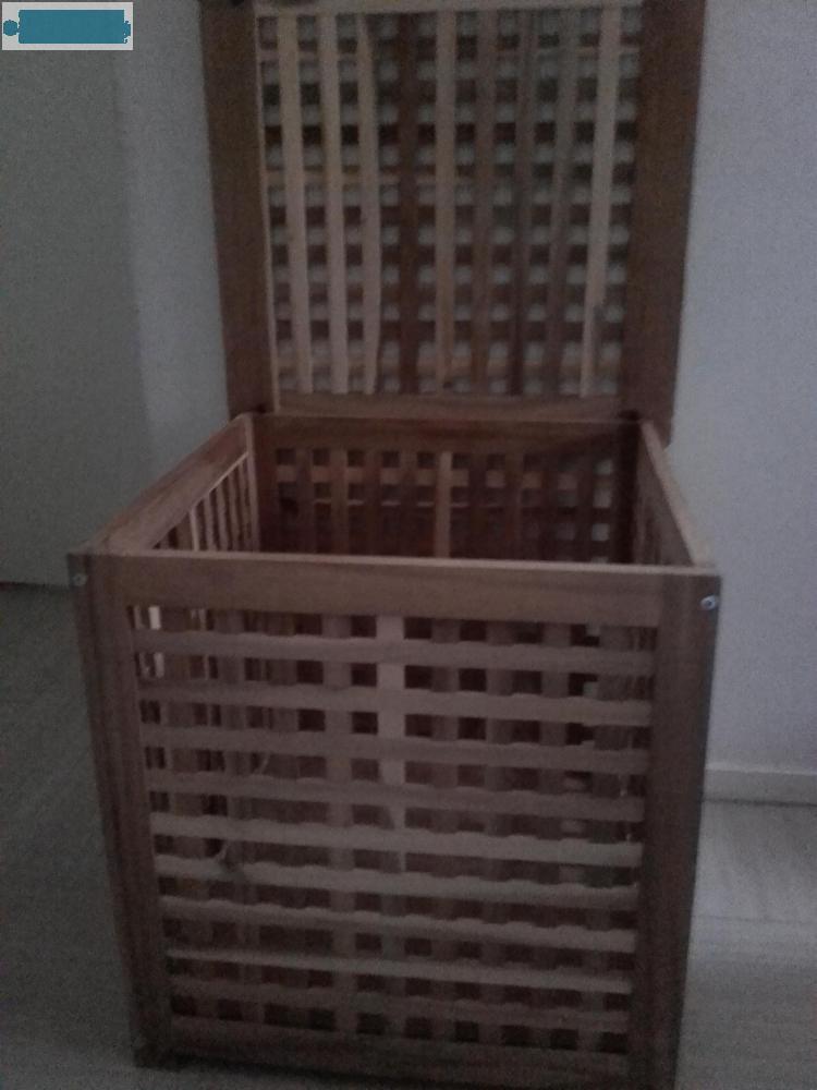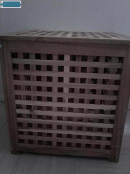 Coffre à linge / coffre de rangement en bois. Le couvercle se retire.