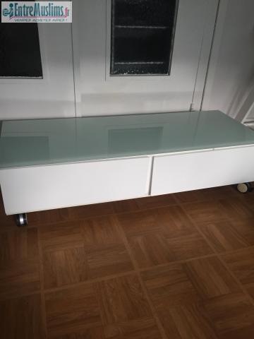 As Salam aleykoum wa rahmatulahi wa barakatuh. Je propose se magnifique meuble bas de télé blanc laquée avec plateau en verre au dessus dimension: L 120cm l 45cm h 31cm