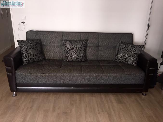 Salon complet fauteuil 3 places convertible un de 2 place convertible aussi et le dernier D une place les 3 ônt un coffre en bon état