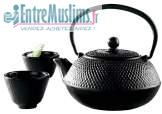 Je vends une théière et ses deux tasses en fontes, et passoire en acier inoxydable.