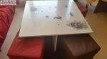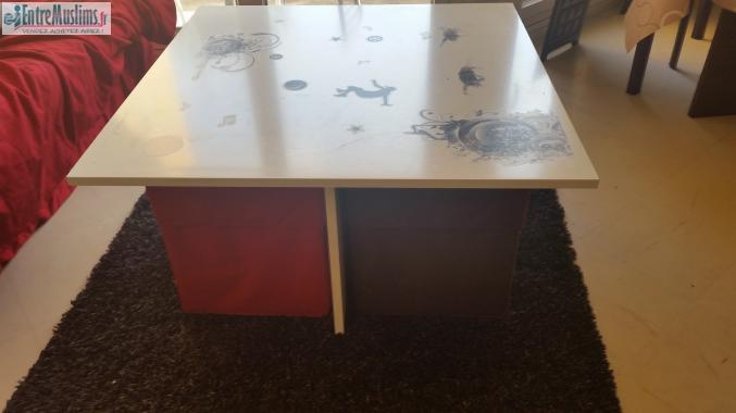 je vends une table basse les stickers sur le dessus peuvent être décoller et s'enlever au lavage il y a 4 poufs avec coffre de rangement dans les poufs