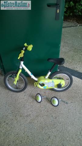 - 1 vélo fille 16 pouces (5-6 ans environ) + roulettes et casque pour 45.00 euros Prix Neuf 94.00€