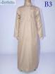 Qamis B3 col fermeture éclair beige : 19 euros. 100% coton de très bonne qualité, vraiment agréable à porter. Plus épais que le Tissu Poly 4 way, mais également très bien pour l’été.