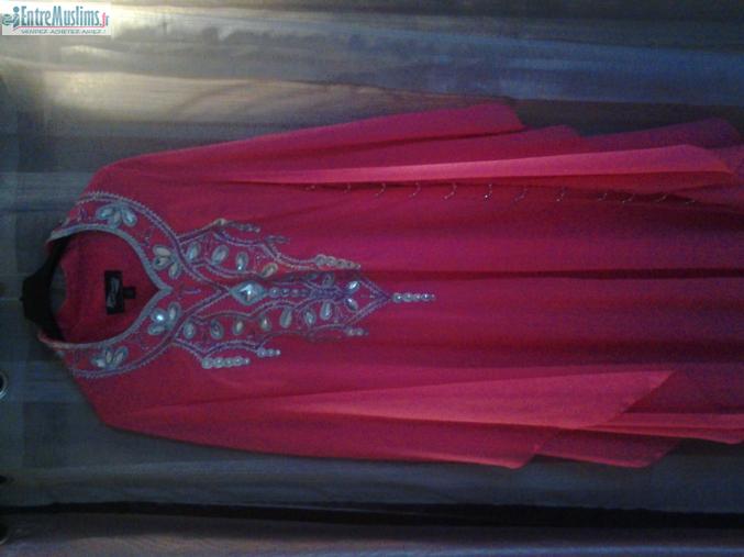 Je vends cette robe de Dubai de couleur rose avec broderies argent et perles, entièrement doublée, comme neuve, portee quelques heures