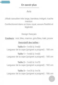 Je vends ce jilbeb de la marque « Assalafiyat », taille 1, noir. Je ne l’ai jamais porté car il me va trop grand, tout neuf.