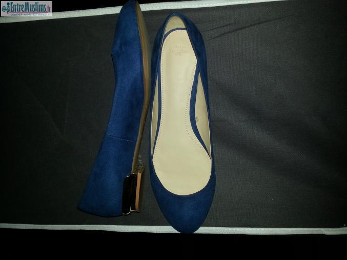 je vends une très jolie paire de ballerine zara de couleur bleu avec un petit talon doré. Neuve, jamais portée. taille 40. (Ne pas avoir le pieds trop large).