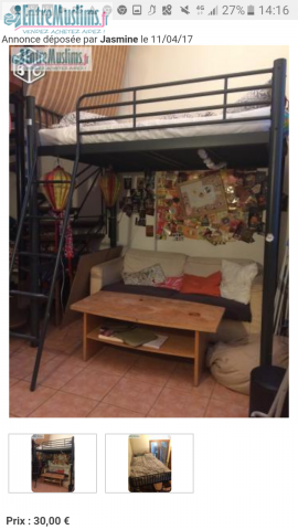 Salam aleykoum je donne un lit mezzanine noir 2 personne sans matelat , un presse repassage et une petite armoire uniquement en difficulté. Venir le recuperer sur vanves avans dimanche . Barak allah oufikoum.