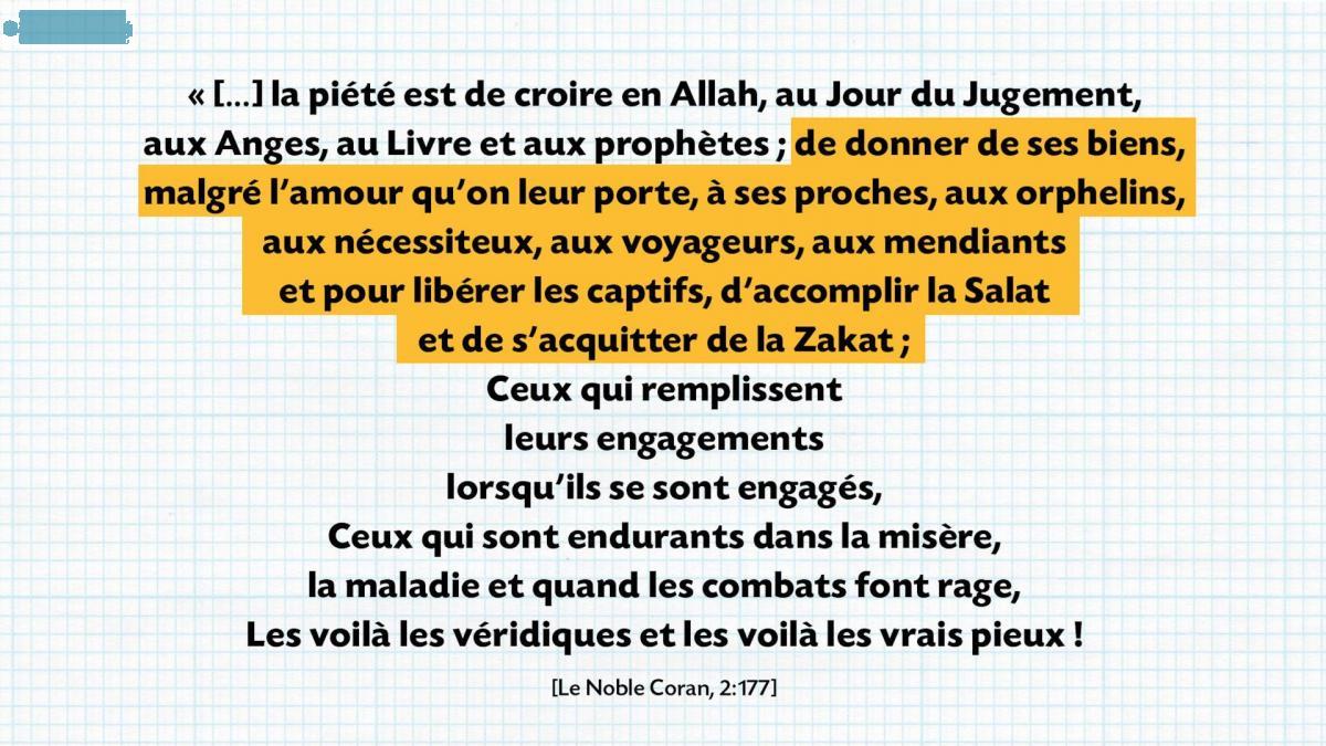 « Et pour tout ce que vous dépensez de vos biens, vous serez pleinement récompensés et nullement lésés. » (Coran 2:272)