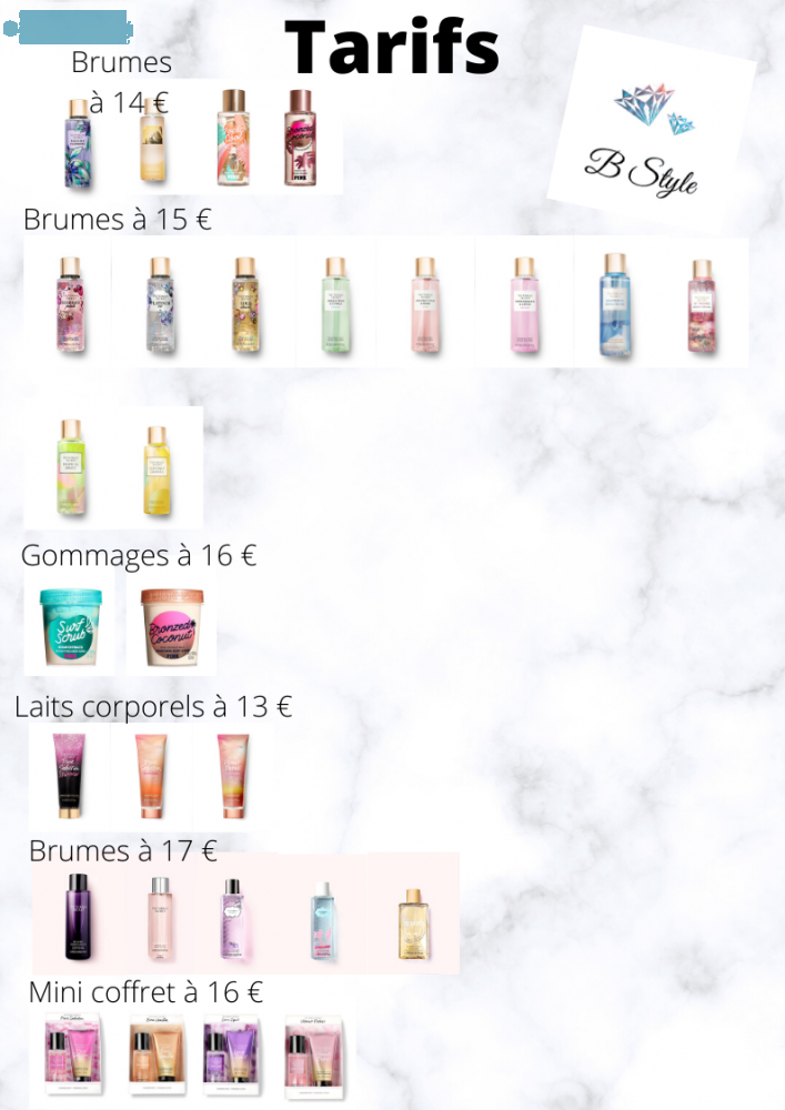 Vente de brumes de la célèbre marque VICTORIA’S SECRET aux senteurs des plus gourmandes (fruitées, sucrées, fleuries, fraiches,...) Tous les produits sont authentiques. ✅