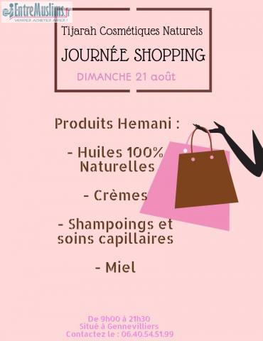 Nous organisons dimanche 21 août de 9h30 à 2-h30 une journée shopping avec tout nos produits cosmétiques de la marque Hemani à des prix attractaif.