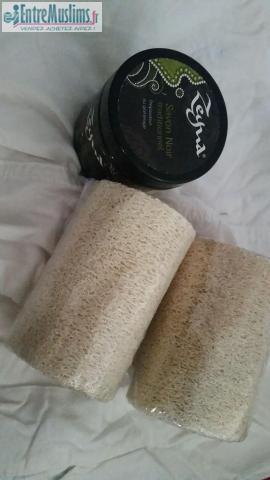 Je vends ce lot savon noir traditionnel et 2 éponges naturell