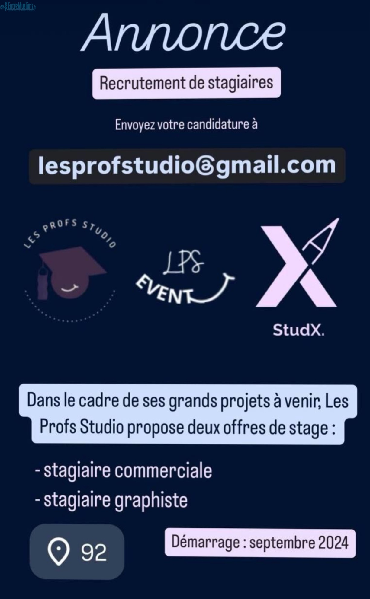La page d’influence Les Profs Studio propose un poste de stagiaire graphiste à pourvoir à compter de fin septembre.